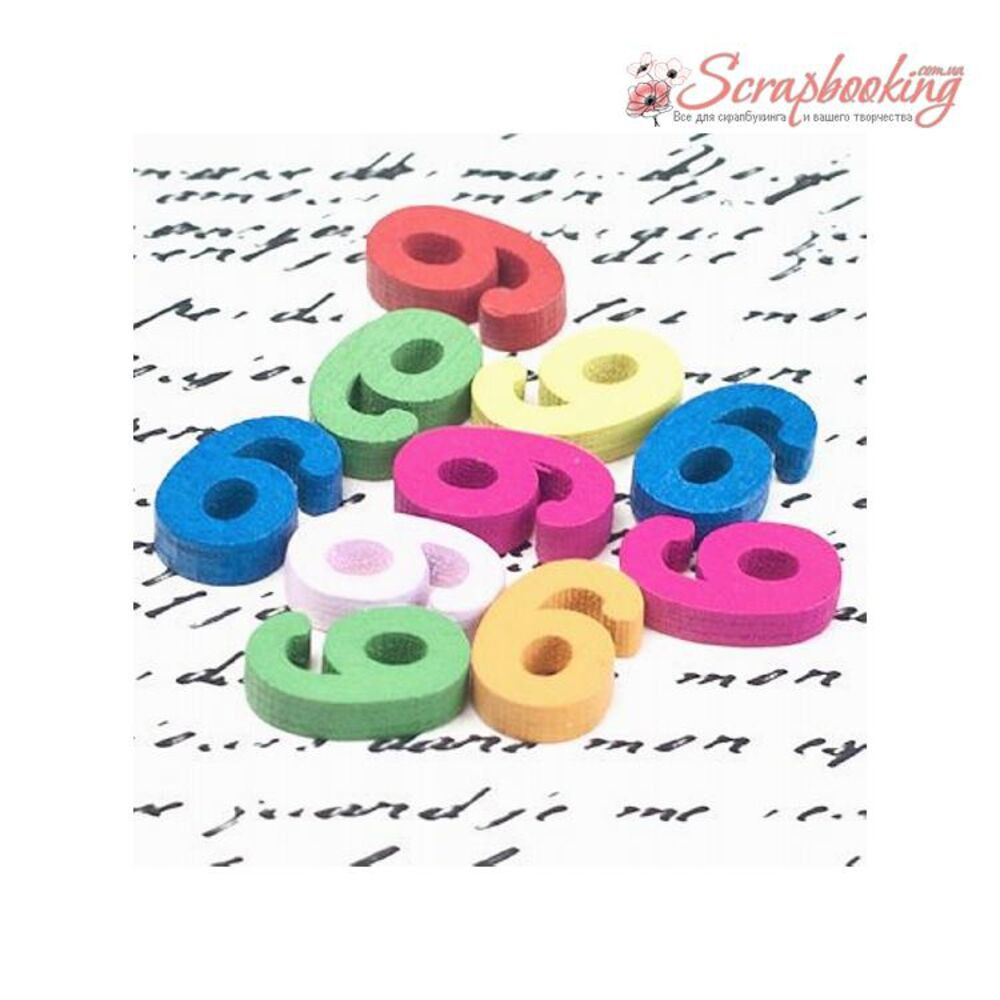 Дерев'яна цифра 6 рожевого кольору. Розмір цифри 10*15*4мм