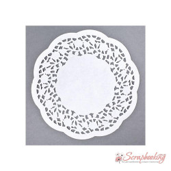 Набір мереживних серветок білого кольору у формі кола. В упаковці 20 ажурних серветок розміром 15.2см...