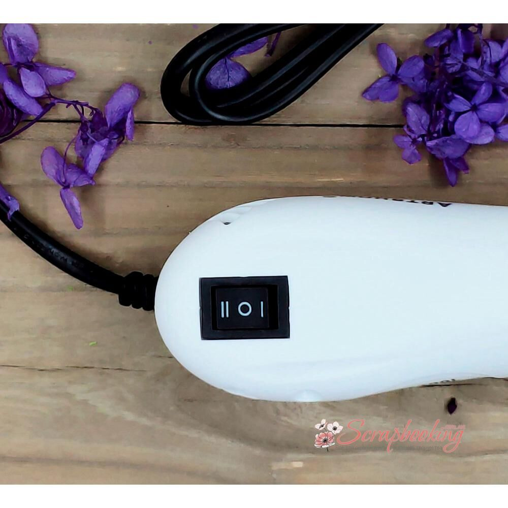Фен має трипозиційний вимикач на 2 швидкості та положення вимк. Відмінно підходить для гарячого ембосингу, створення рельєфу, термоусадки пластикових плівок та певних видів пластику.