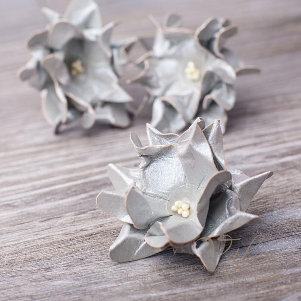 Декоративна квітка гарденія ручної роботи сріблястого кольору виробника Valeo. Розмір квітки 35мм.