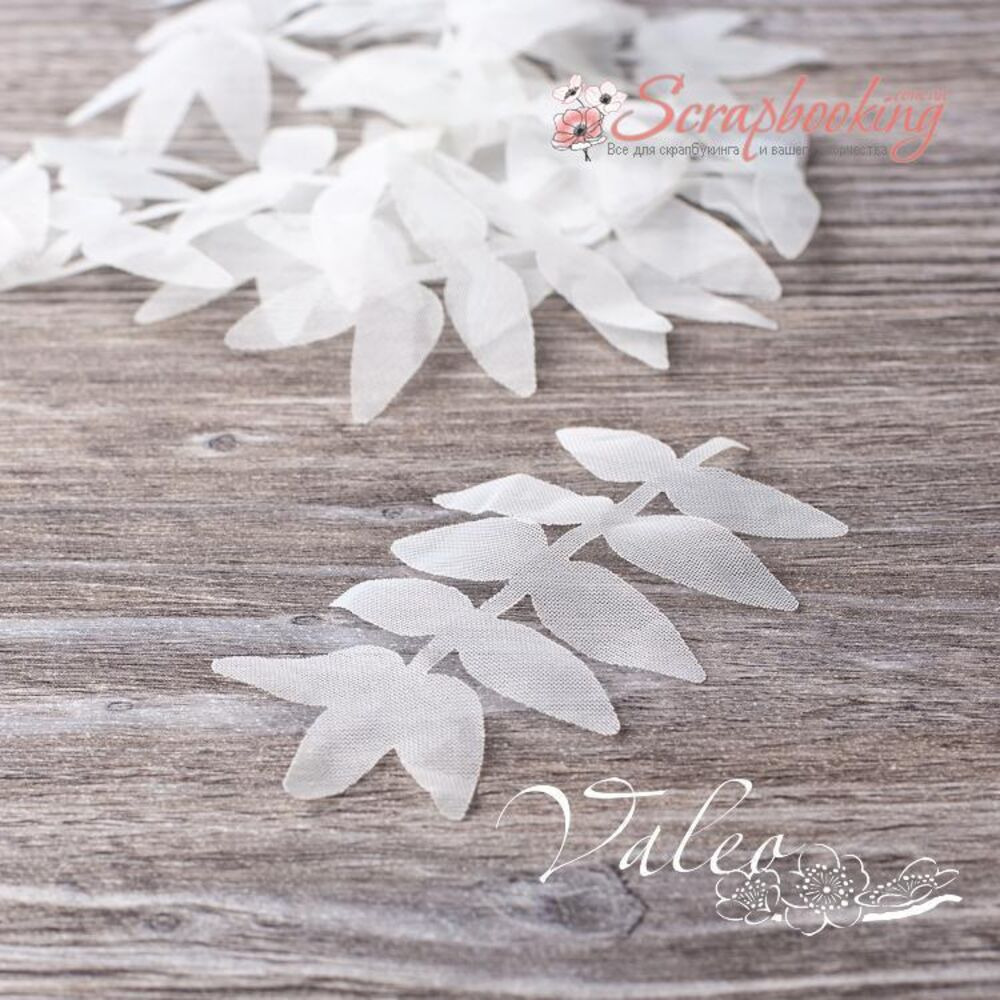 Декоративні гілочки з листочками від виробника Valeo. В упаковці 10 гілочок білого кольору. Розмір гілочки 8*4см