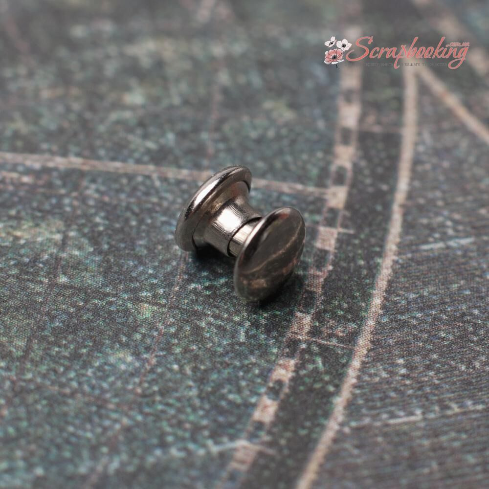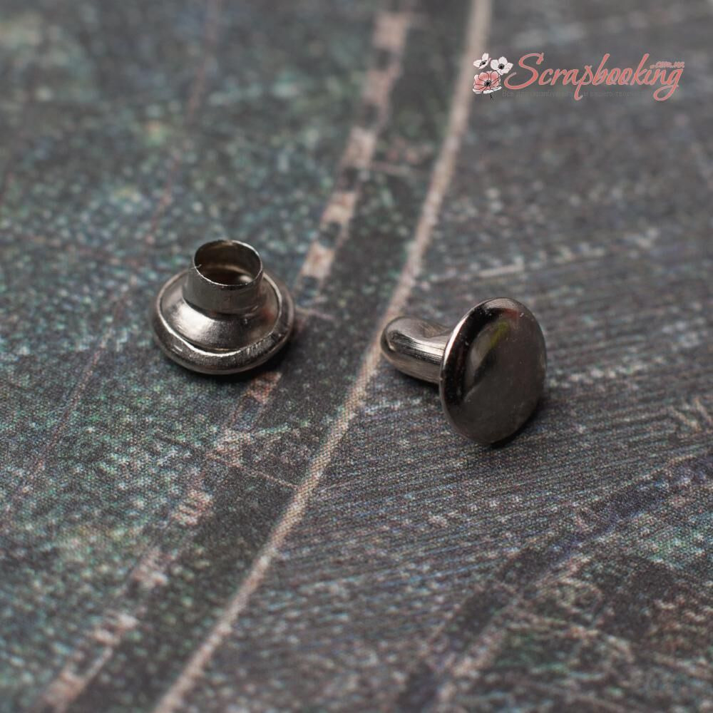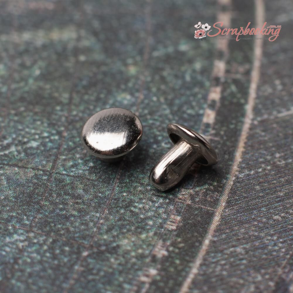 Двосторонній хольнітен сріблястого кольору з діаметром капелюшка 6мм. Товщина капелюшка 1мм. Довжина ніжки 5мм. Товщина ніжки 2мм.