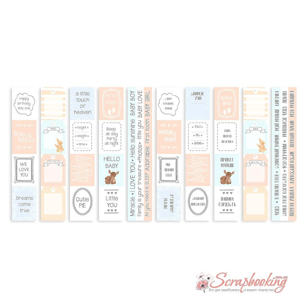 Набір з 5 смуг з картками для декорування російською та англійською мовами, розмір 5см х 30,5см, колекція "Baby&Mama".