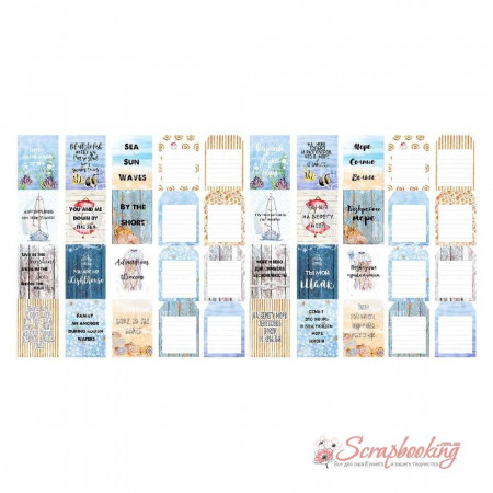 Набір з 4 смуг з картками для декорування російською та англійською мовами, розмір 5см х 30,5см, колекція "Sea Breeze".
