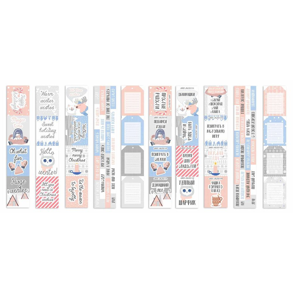 Набор из 5-и полос с карточками для декорирования, размер 5см х 30,5см, коллекция Huge Winter. Плотность 200 г/кв.м