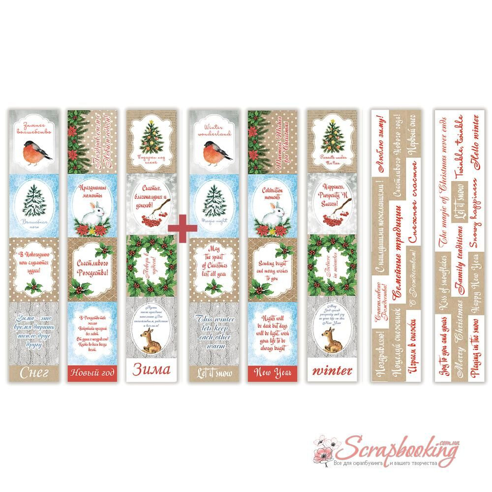 Набор из 5-и полос с карточками для декорирования, размер 5см х 30,5см, коллекция "Smile of winter".