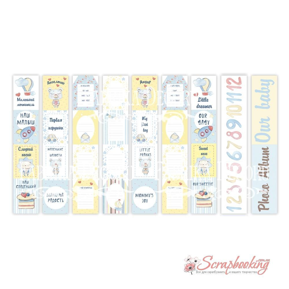 Набор из 5 полос с карточками для декорирования на русском и английском языках, размер 5см х 30,5см, коллекция "Sweet baby boy".