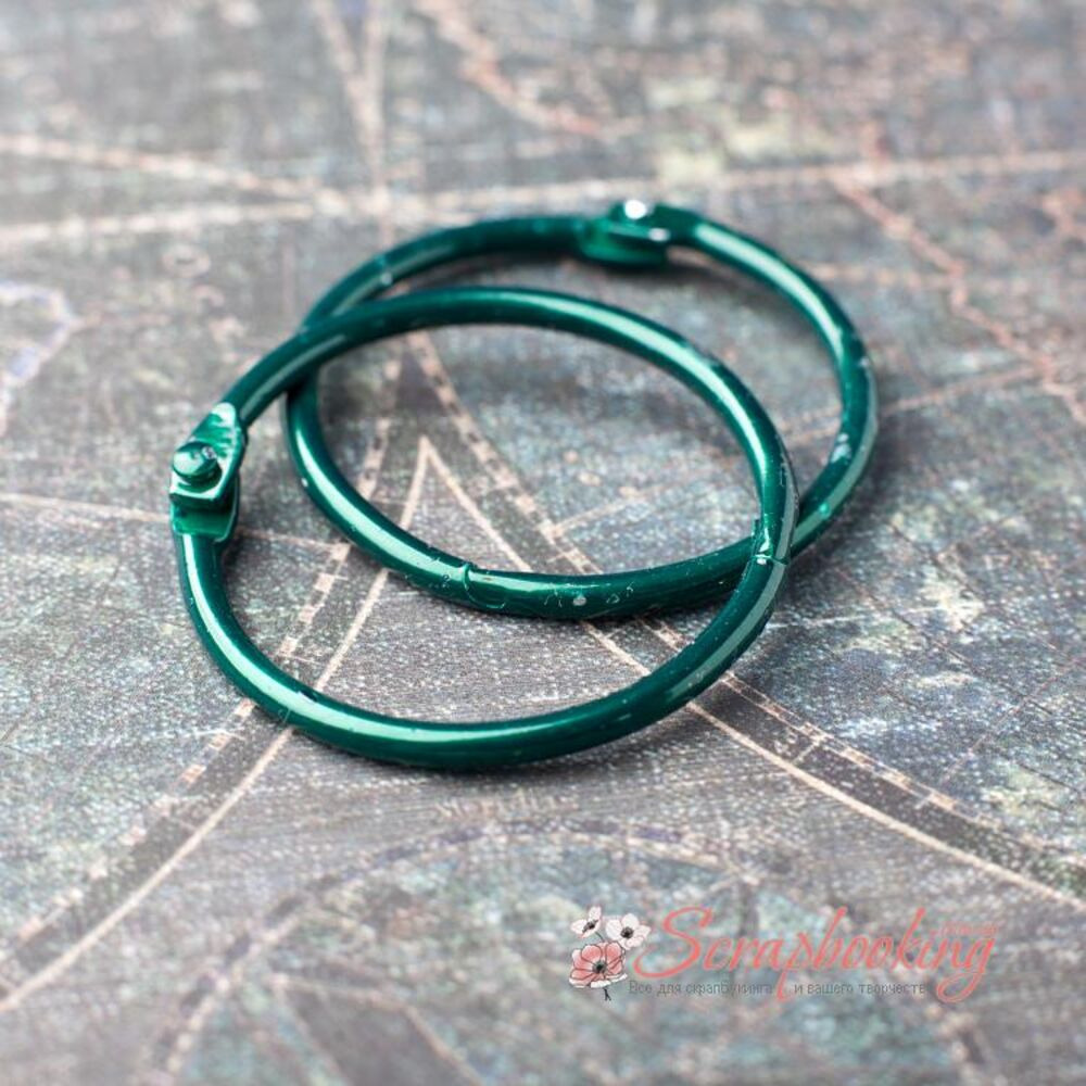 Металеве кільце для з'єднання аркушів альбому зеленого кольору. Діаметр обручки: 38мм.