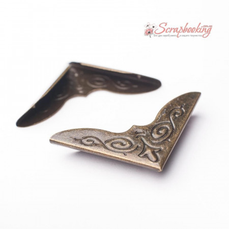 Металевий куточок бронзового кольору для альбомів, книг, блокнотів. Довжина куточка 30мм, товщина 5мм.