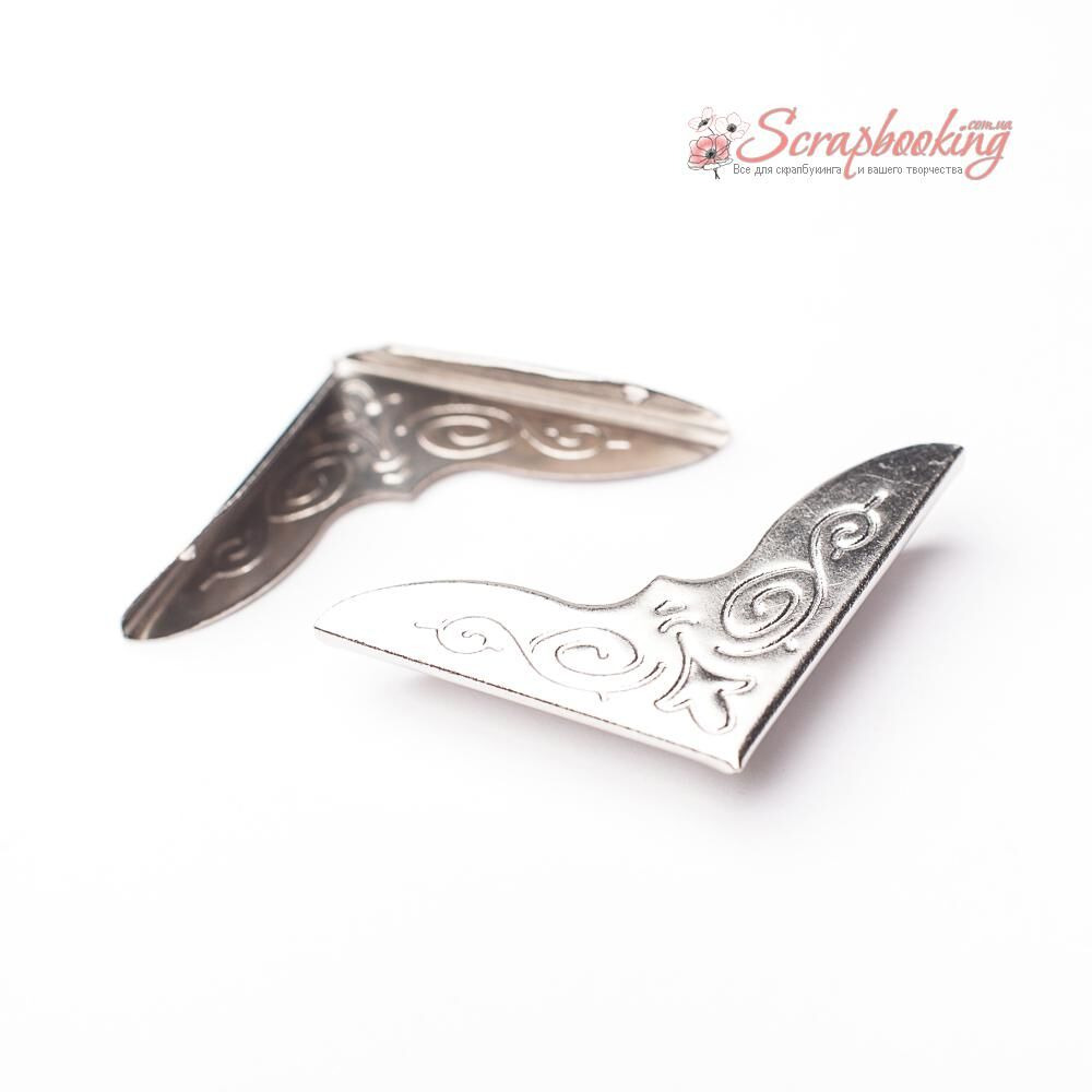 Металевий куточок сріблястого кольору для альбомів, книг, блокнотів. Довжина куточка 30мм, товщина 5мм.