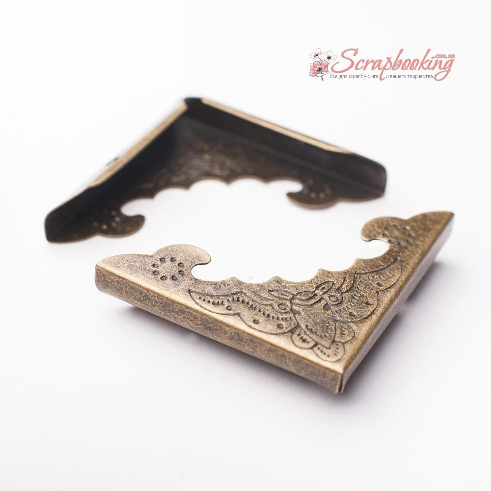 Металевий куточок бронзового кольору для альбомів, книг, блокнотів. Довжина куточка 40мм, товщина 7мм.