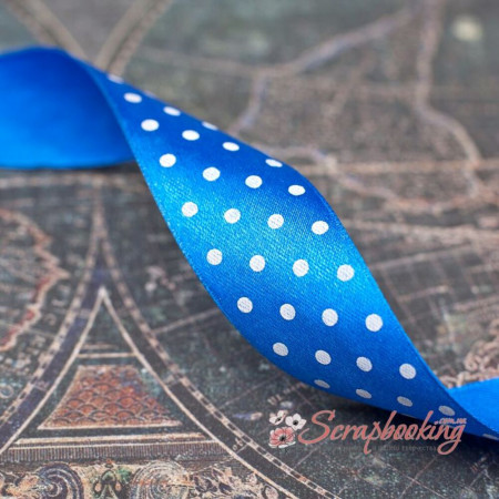 Декоративная атласная лента с точками белого цвета на синей основе. Ширина ленты 25мм. Цена указана за 1метр. Используется при упаковке подарков, в качестве декоративного элемента при изготовлении открыток, альбомов, блокнотов.