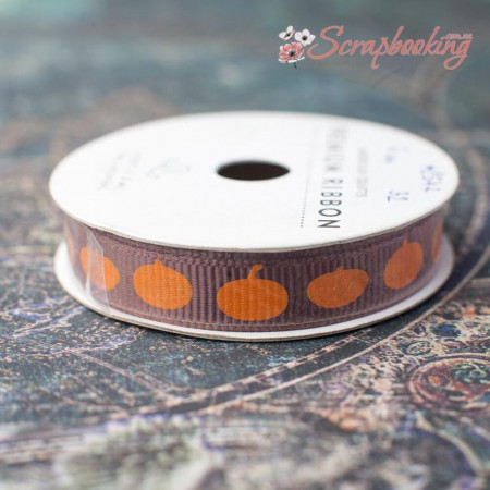 Декоративная репсовая лента коричневого цвета с тыквами от производителя American Crafts шириной 9.5мм. Длина ленты в рулоне 1.2м.