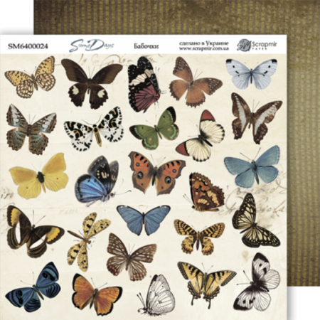 Двусторонний лист бумаги 20*20см плотностью 190гр/м2 Бабочки из коллекции Some days от производителя Scrapmir. Используется при изготовлении альбомов, открыток, подарочных коробочек. Архивное качество