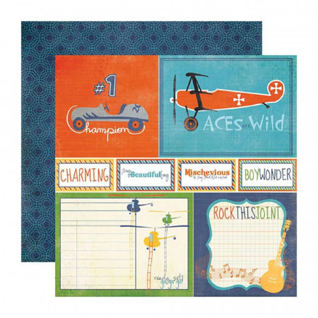 Лист бумаги для скрапбукинга Boy Wonder из коллекции A Boys Life производителя Echo Park. Размер листа 30*30см. Плотность бумаги 180гр/м2, бумага с двусторонней печатью
