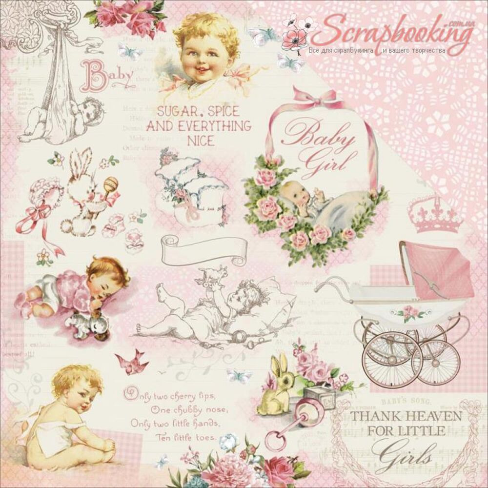 Лист бумаги для скрапбукинга Tiny Tot из коллекции Peek-A-Boo производителя Kaisercraft. Размер листа 30*30см. Плотность бумаги 180гр/м2, бумага с двусторонней печатью