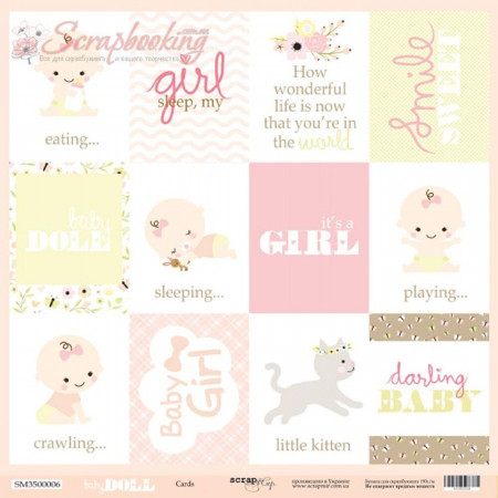 Односторонний лист бумаги 30*30см плотностью 190гр/м2 Карточки на английском из коллекции Doll Baby от производителя Scrapmir. Используется при изготовлении альбомов, открыток, подарочных коробочек. Архивное качество