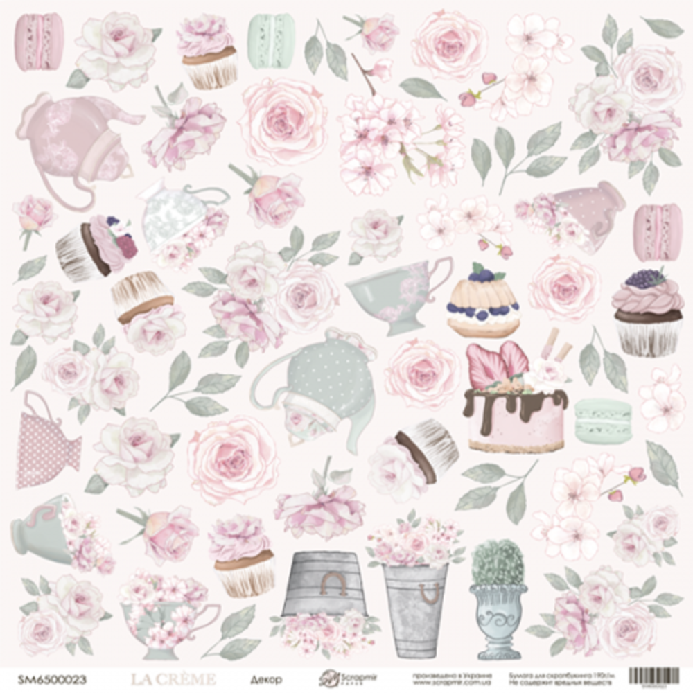 Односторонний лист бумаги 20*20см плотностью 190гр/м2 Декор из коллекции La Creme от производителя Scrapmir. Используется при изготовлении альбомов, открыток, подарочных коробочек. Архивное качество