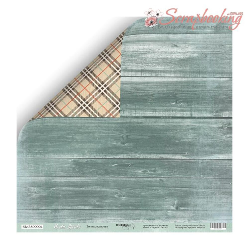 Двусторонний лист бумаги Зелёное дерево 30*30см плотностью 190гр/м2 из коллекции Nordic Spirits от производителя Scrapmir. Используется при изготовлении альбомов, открыток, подарочных коробочек. Архивное качество