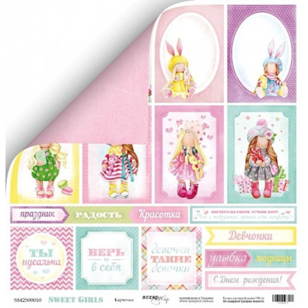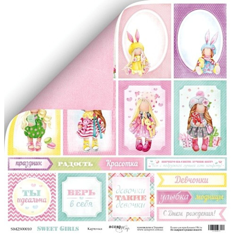 Двусторонний лист бумаги 30*30см плотностью 190гр/м2 из коллекции Sweet Girls от производителя Scrapmir. Яркая, красочная и задорная девчачья коллекция так замечательно подходит для летних и не только работ. Из бумаги можно изготовить маленькие коробочки для милых презентов, открытки для девочек, конвертик для денег. ну и конечн же яркие альбомы, блокноты и дневники. Архивное качество