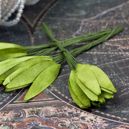 Букетик паперових декоративних листочків ручної роботи зеленого кольору. У букеті 10 листків розміром 8мм на 40мм. Довжина стеблинки близько 50мм