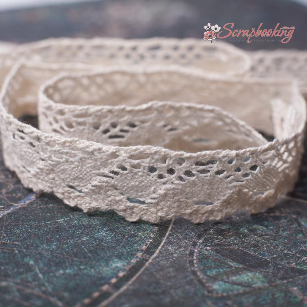 Декоративне мереживо бежевого кольору. Ширина мережива 20мм. Ціна вказана за 1 метр. Використовується для оформлення листівок та альбомів, для упаковки подарунків, при декоруванні предметів інтер'єру