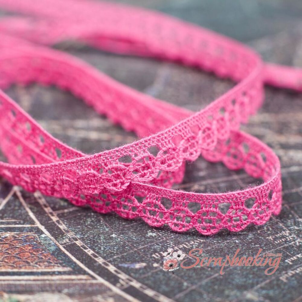 Декоративне мереживо стрічка малинового кольору. Ширина мережива 7мм. Ціна вказана за 1 метр. Використовується для оформлення листівок та альбомів, для упаковки подарунків, при декоруванні предметів інтер'єру