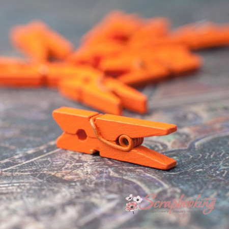 Набір декоративні дерев'яні міні прищіпки. Набір містить 10 маленьких прищіпок розміром 2.5см. Колір прищіпок: померанчеві. Застосовуються для кріплення фотографій та іншого декору.