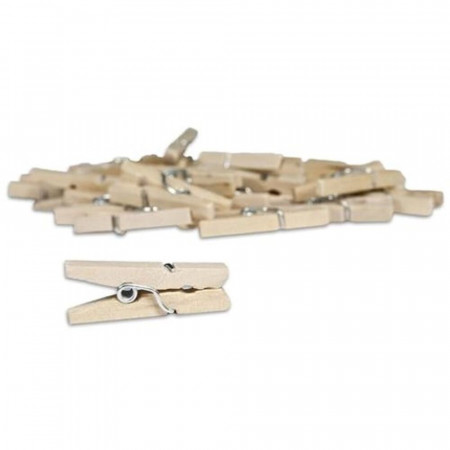 Набір декоративних міні прищіпок від виробника Canvas Corp. Набір містить 25 маленьких прищіпок розміром 2,5 див. Колір прищіпок: натуральний колір дерева, прищіпки незабарвлені. Застосовуються для кріплення фотографій та іншого декору.