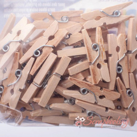 Набір декоративних дерев'яних міні прищіпок від виробника Loew-Cornell. Набір містить 50 маленьких прищіпок розміром 2,5 див. Колір прищіпок: натуральний. Застосовуються для кріплення фотографій та іншого декору.