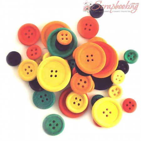 Декоративні дерев'яні гудзики різних кольорів Craftwood Colored від виробника Multicraft Imports. У наборі 40 гудзиків розміром від 12мм до 26мм.