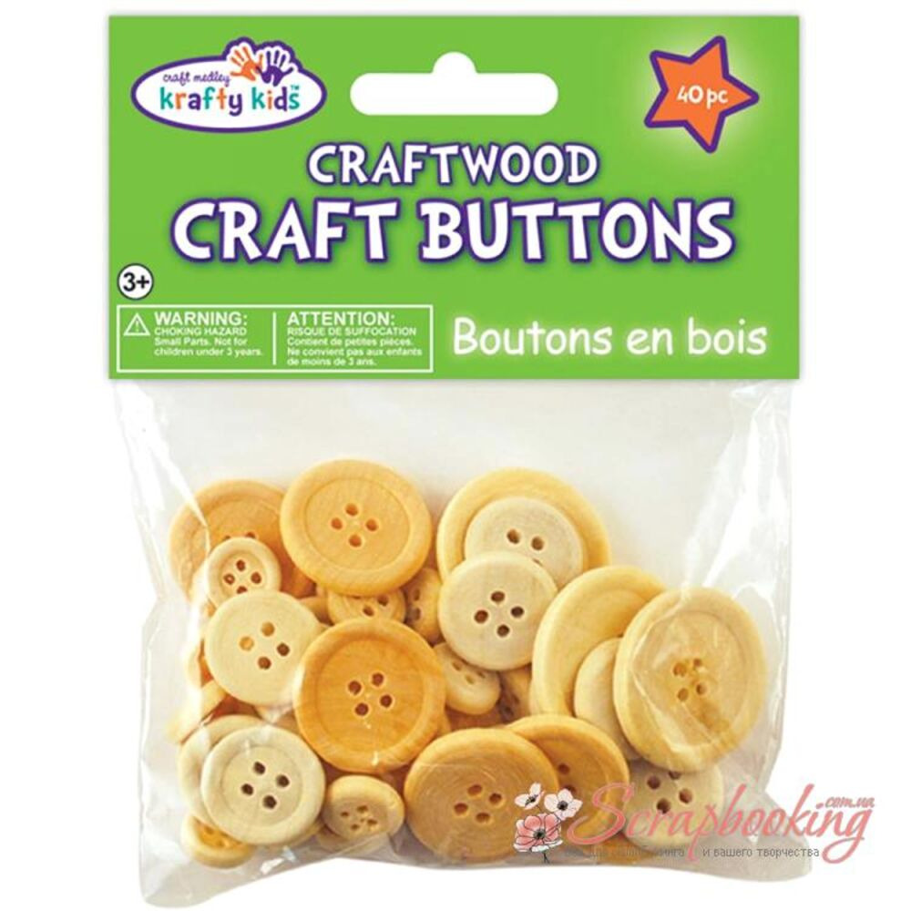 Декоративні дерев'яні гудзики натурального кольору Craftwood Natural від виробника Multicraft Imports. У наборі 40 гудзиків розміром від 12мм до 26мм.