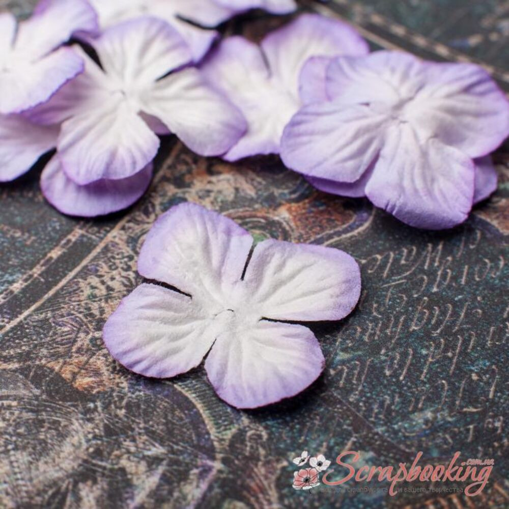 Набір паперових гортензій біло-фіолетового кольору. В упаковці 10 гортензій розміром 25мм.
