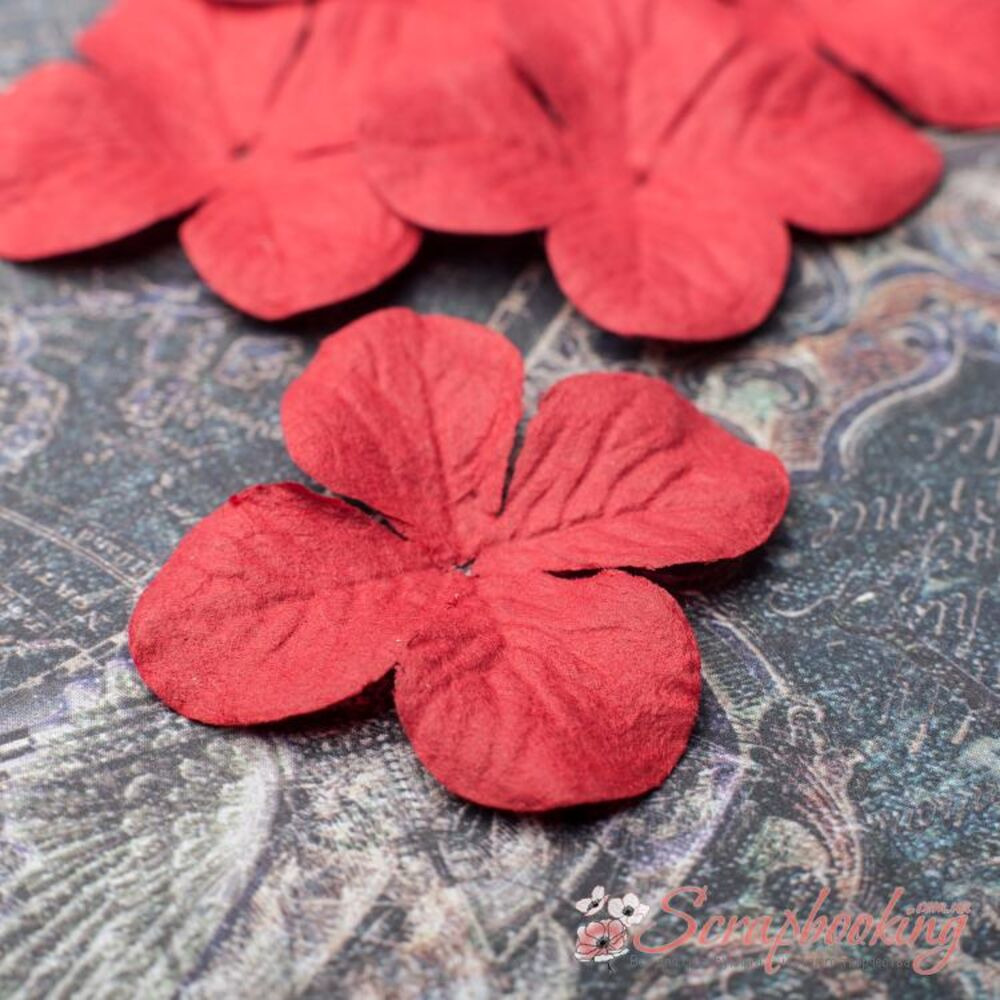 Набір паперових гортензій червоного кольору. В упаковці 5 гортензій розміром 32мм.