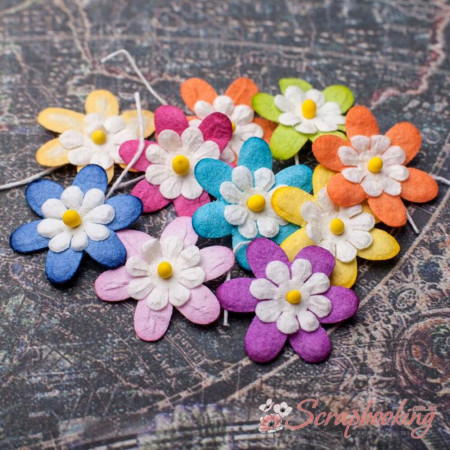 Набір паперових ромашок різних кольорів. В упаковці 10 ромашок розміром 20мм.