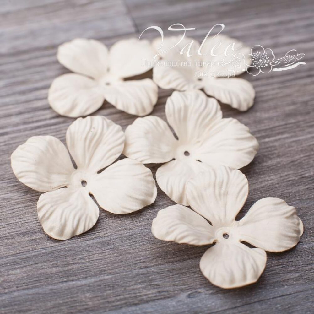Паперові квіти від виробника Valeo. У наборі 5 квіток бежевого кольору розміром 35мм. Прекрасна прикраса для запрошень, листівок, сторінок альбомів.