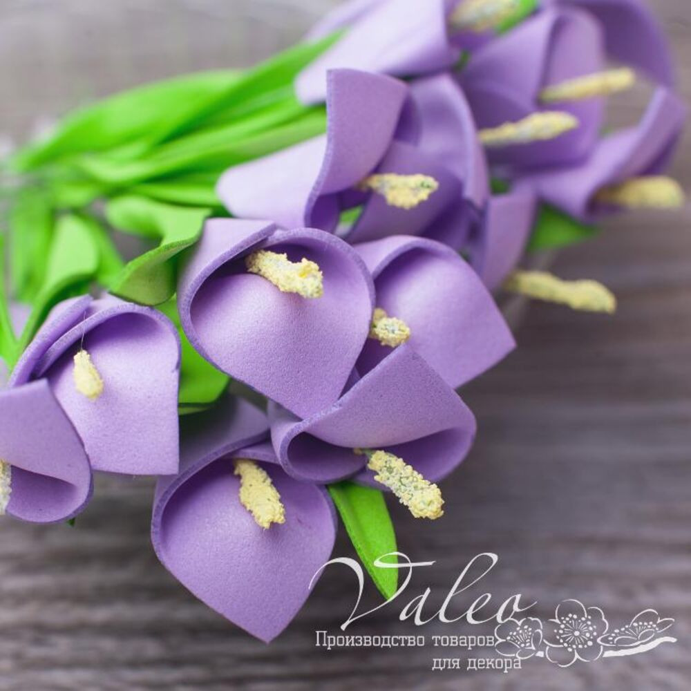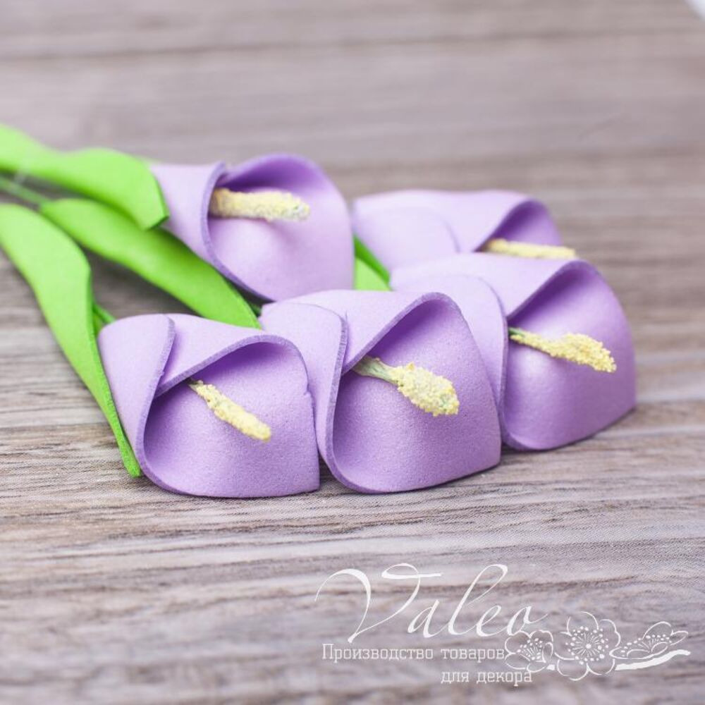 Набір кал ручної роботи з фоамірану українського виробника декору Valeo. У наборі 5 квіточок бузкового кольору розміром 20*30мм. Прекрасна прикраса для запрошень, листівок, сторінок альбомів.