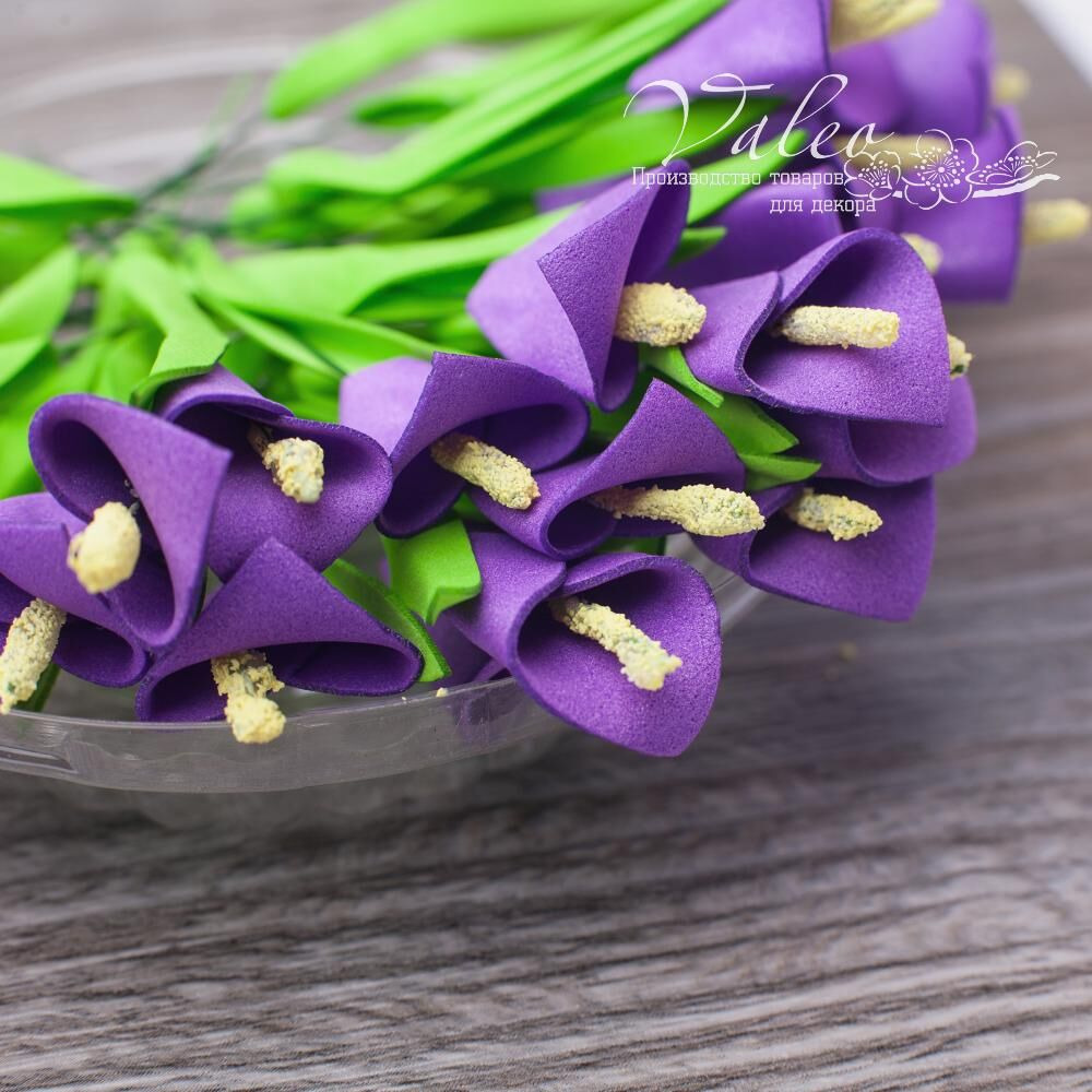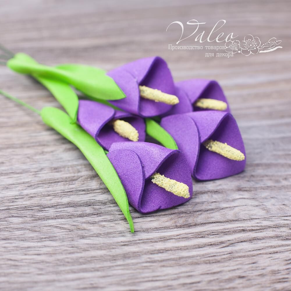 Набір кал ручної роботи з фоамірану українського виробника декору Valeo. У наборі 5 квіточок фіолетового кольору розміром 20*30мм. Прекрасна прикраса для запрошень, листівок, сторінок альбомів.