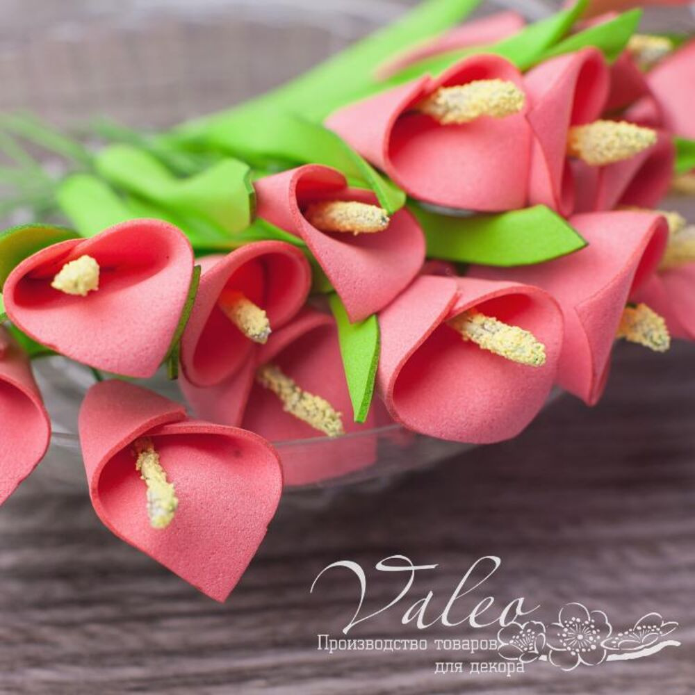 Набір кал ручної роботи з фоамірану українського виробника декору Valeo. У наборі 5 квіточок рожевого кольору розміром 20*30мм. Прекрасна прикраса для запрошень, листівок, сторінок альбомів.