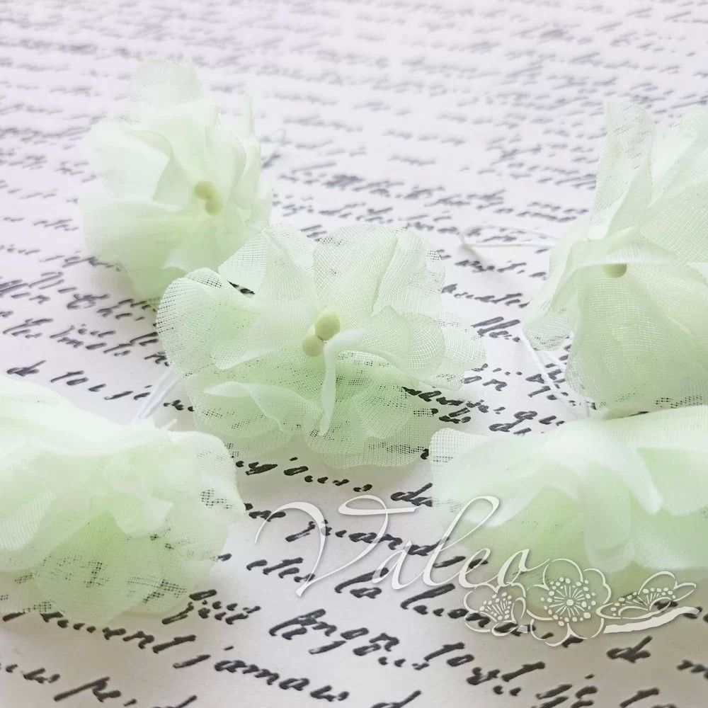 Декоративні тканини Незабудки ручної роботи від виробника Valeo. В упаковці 5 квіток салатового кольору розміром 4.5см.