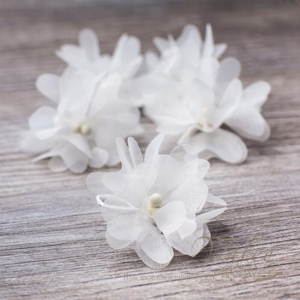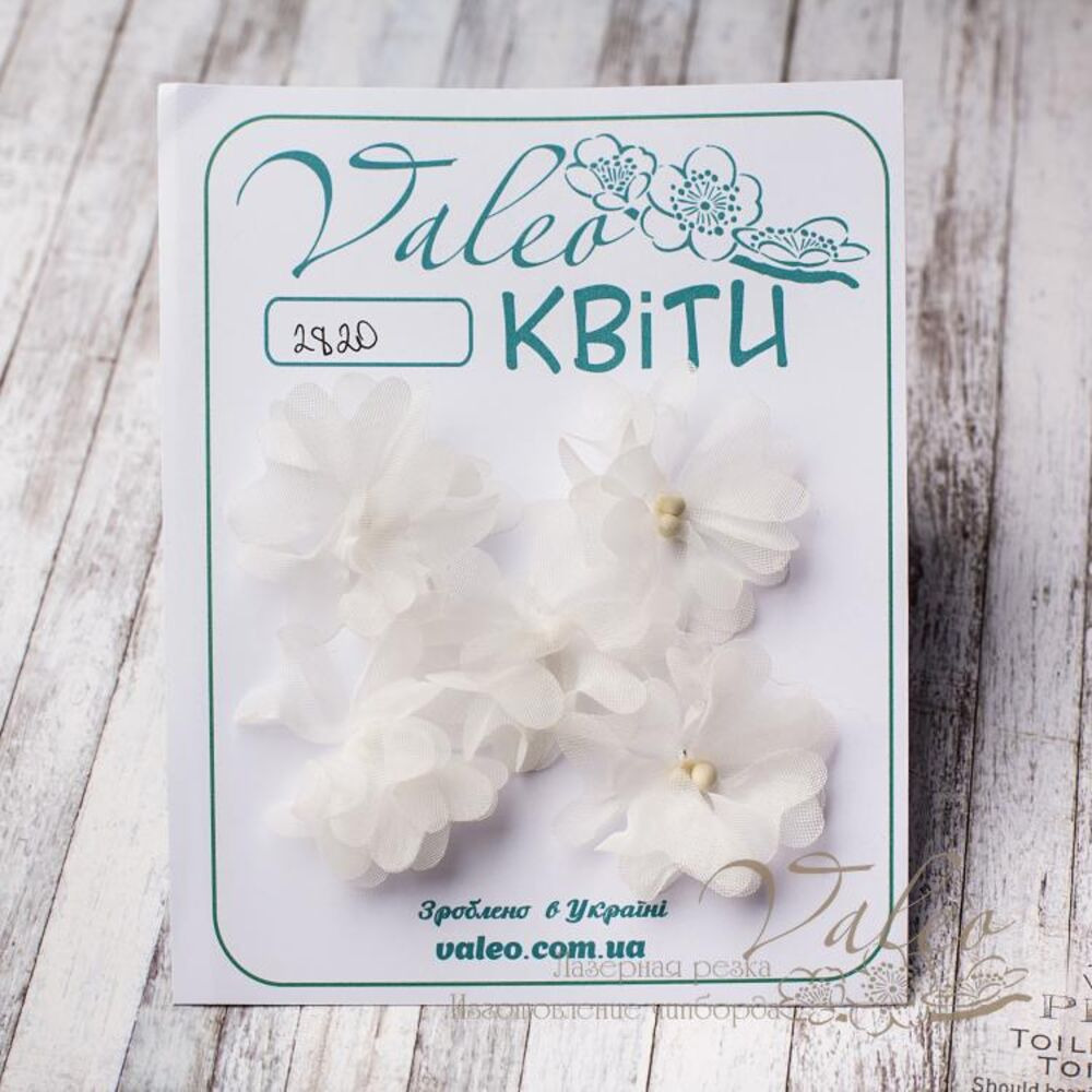 Декоративні тканини Незабудки ручної роботи від виробника Valeo. В упаковці 5 квіток білого кольору розміром 4см.