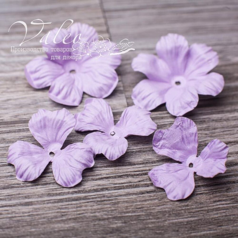 Паперові квіти від виробника Valeo. У наборі 2 квітки 40мм та 3 квітки 30мм світло фіолетового кольору. Прекрасна прикраса для запрошень, листівок, сторінок альбомів.