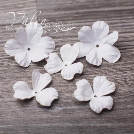 Паперові квіти від виробника Valeo. У наборі 2 квітки 40мм та 3 квітки 30мм білого кольору. Прекрасна прикраса для запрошень, листівок, сторінок альбомів.