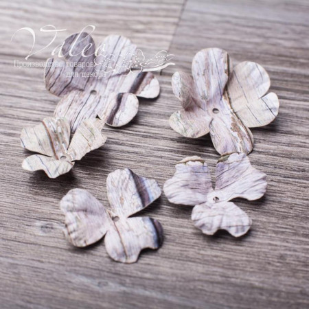 Паперові квіти від виробника Valeo. У наборі 2 квітки 40мм та 3 квітки 30мм з текстурою дерево. Прекрасна прикраса для запрошень, листівок, сторінок альбомів.