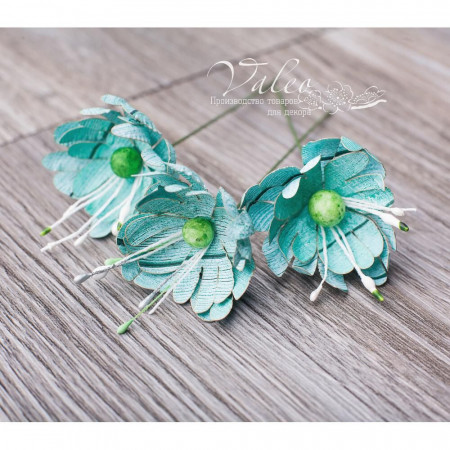 Паперові квіти від виробника Valeo. У наборі 3 квітки розміром 40мм із принтом дерево кольору аквамарин. Прекрасна прикраса для запрошень, листівок, сторінок альбомів.