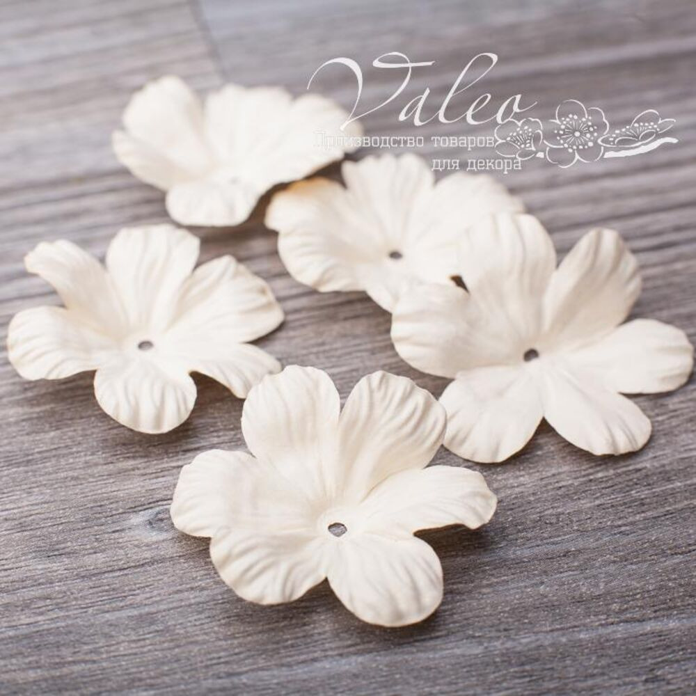 Паперові квіти від виробника Valeo. У наборі 5 квіток бежевого кольору розміром 40мм. Прекрасна прикраса для запрошень, листівок, сторінок альбомів.