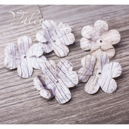 Паперові квіти від виробника Valeo. У наборі 5 квіток із принтом дерево розміром 40мм. Прекрасна прикраса для запрошень, листівок, сторінок альбомів.