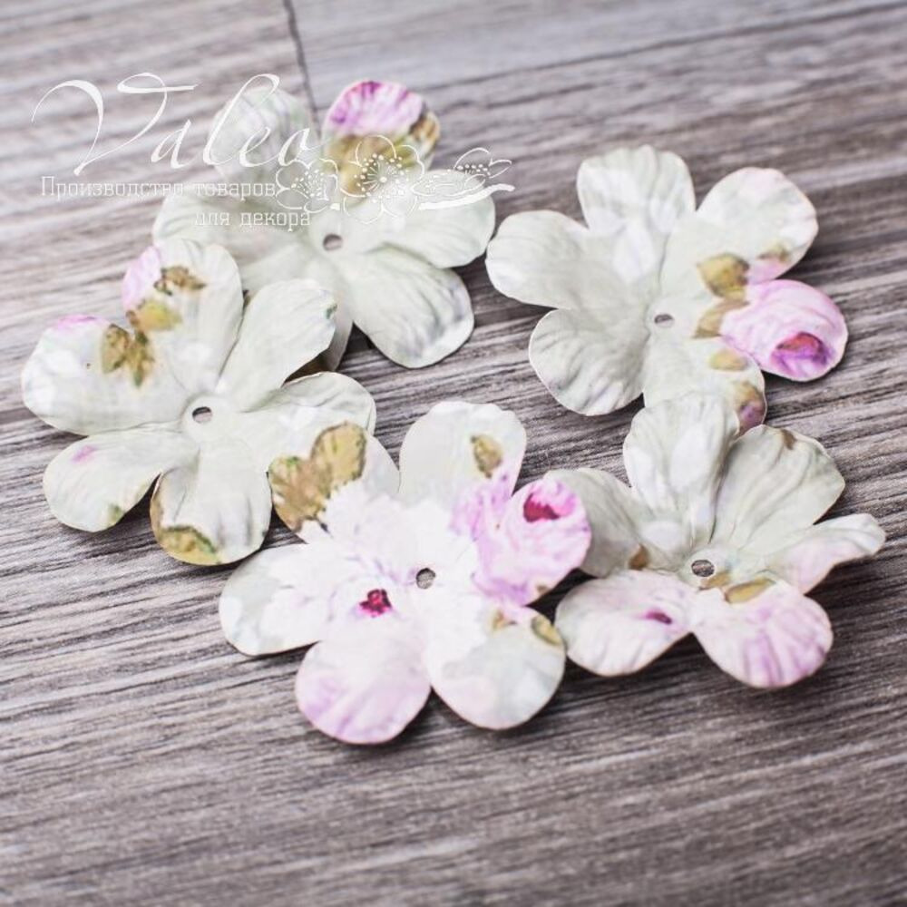 Паперові квіти від виробника Valeo. У наборі 5 квіток із квітковим принтом розміром 40мм. Прекрасна прикраса для запрошень, листівок, сторінок альбомів.