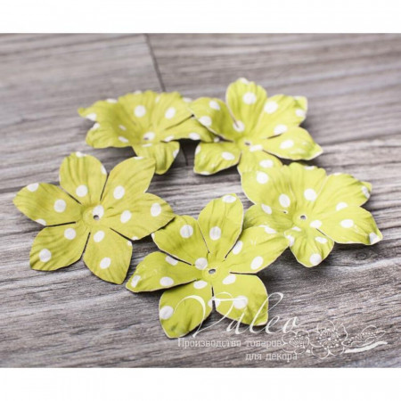 Паперові квіти від виробника Valeo. У наборі 5 квітів оливкового кольору розміром 40мм. Прекрасна прикраса для запрошень, листівок, сторінок альбомів.