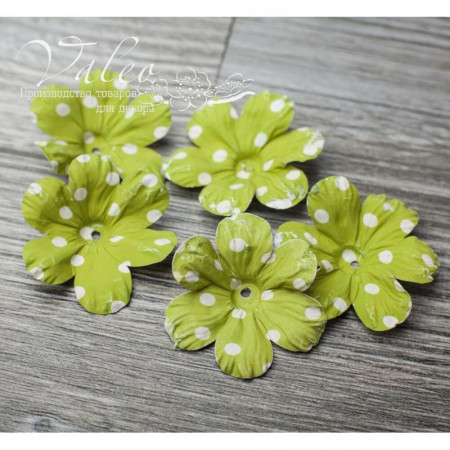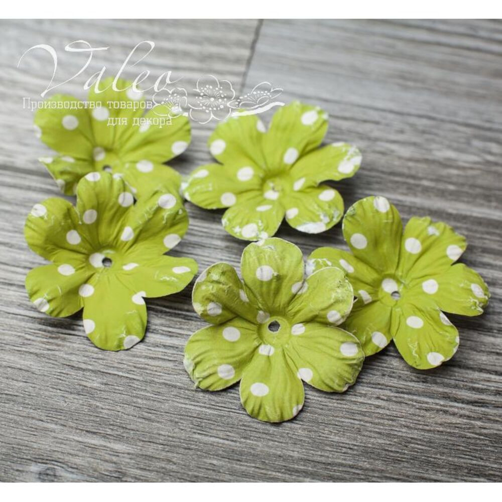 Паперові квіти від виробника Valeo. У наборі 5 оливкових квіток кольору розміром 40мм. Прекрасна прикраса для запрошень, листівок, сторінок альбомів.